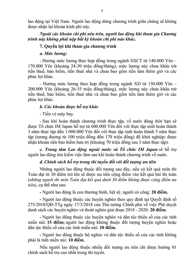Tuyển chọn thực tập sinh nam đi thực tập kỹ thuật tại Nhật Bản theo Chương trình IM JAPAN.